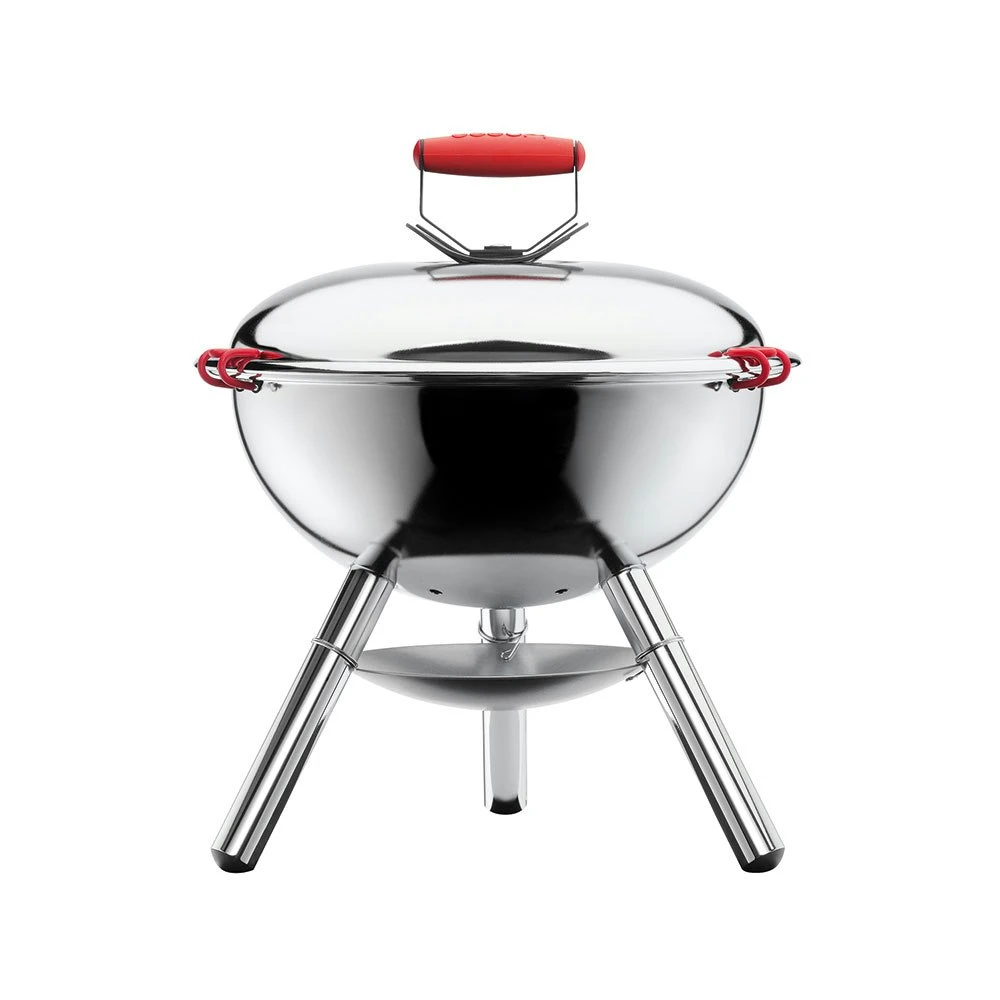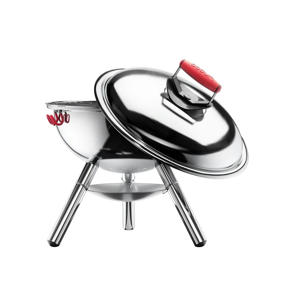 The Charcoal Grill from Bodum fits perfectly with the picnic in the park or the terrace. The grill is made of matte steel. Chrome-plated, stable steel legs. Handles in heat-resistant silicone, adjustable airflow and there is a lockable lid. The barbecue area is 38 cm. Choose from several colors!